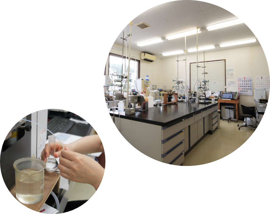 当社では土壌分析室を設け、 製造前・製造中・製造後に、製品の物性確認試験 (N、P、K、pH、EC、水分、嵩比重、放射性物質測定、等) 植生試験を行い、日頃より品質管理の徹底に努めています。